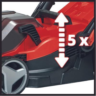 - Κεντρική ρύθμιση ύψους κοπής σε 5 επίπεδα (25-65 mm).