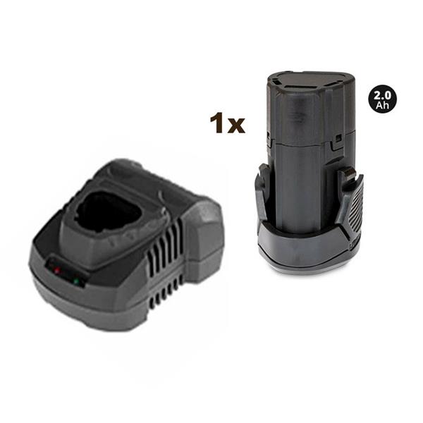 - Περιλαμβάνει: Μπαταρία επαναφορτιζόμενη κουμπωτή Li-Ion 2.0Ah 12V, φορτιστή, + δώρο τσάντα μεταφοράς.