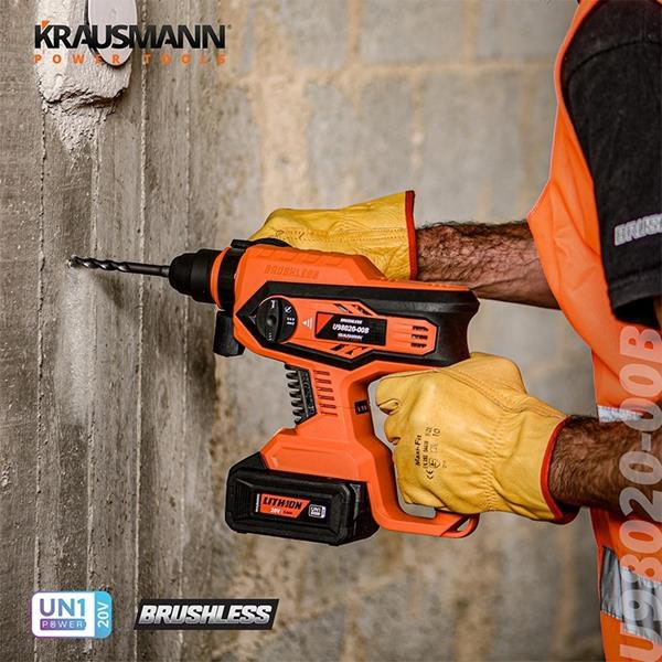 Σκαπτικό της εταιρείας Krausmann, με λειτουργία μπαταρίας 20V. Διαθέτει λειτουργία κρούσης για καλέμισμα σε διάφορα δομικά υλικά, λειτουργία περιστροφής χωρίς κρούση για διάτρηση σε χαμηλής σκληρότητας υλικά και δυνατότητα περιστροφής με κρούση για διάτρηση σε υψηλής σκληρότητας υλικά όπως μπετόν. Επίσης, διαθέτει υποδοχή SDS - SDS Plus (TE-C) για καλύτερη απόδοση σε λειτουργίες περιστροφής με κρούση συγκριτικά με τις υπόλοιπες (ενδείκνυνται για εργασία σε μπετό ή πέτρα) και εύκολη αλλαγή τρυπανιών που μπορεί να γίνει ακόμη και με το ένα χέρι. Ακόμη, έχει δυνατότητα προσαρμογής της ταχύτητας έως 1400rpm ώστε να ρυθμίζεται ανάλογα με την εργασία που θέλετε να κάνετε και λειτουργία βιδώματος/ξεβιδώματος. Η συσκευασία περιλαμβάνει: 2 μπαταρίες 4.0Ah.