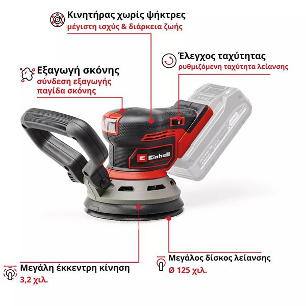 - Εξαιρετικά λεπτή λείανση και υψηλή απόδοση χάρη στην έκκεντρη κίνηση.