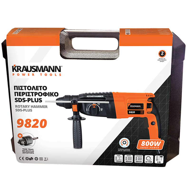 ΠΙΣΤΟΛΕΤΟ ΠΕΡΙΣΤΡΟΦΙΚΟ SDS-PLUS 800W 9820 KRAUSMANN